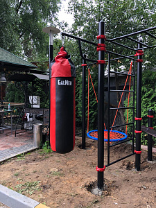 Форма: Цилиндр. Вес: 55 кг. Высота: 117 см. Диаметр: 34 см. Материал: Прочная армированная тентовая ткань с ПВХ покрытием плотностью 630 г/м2; Наполнитель: резиновый текстиль. Крепление: кольцо, цепь, карабин; Цвет: красный, синий, черный. Страна производства - Россия.