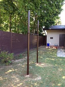· крепеж перекладин к вертикальным опорным столбам осуществляется при помощи хомутов, следовательно, высоту перекладин можно изменить в течение нескольких минут на любую высоту
