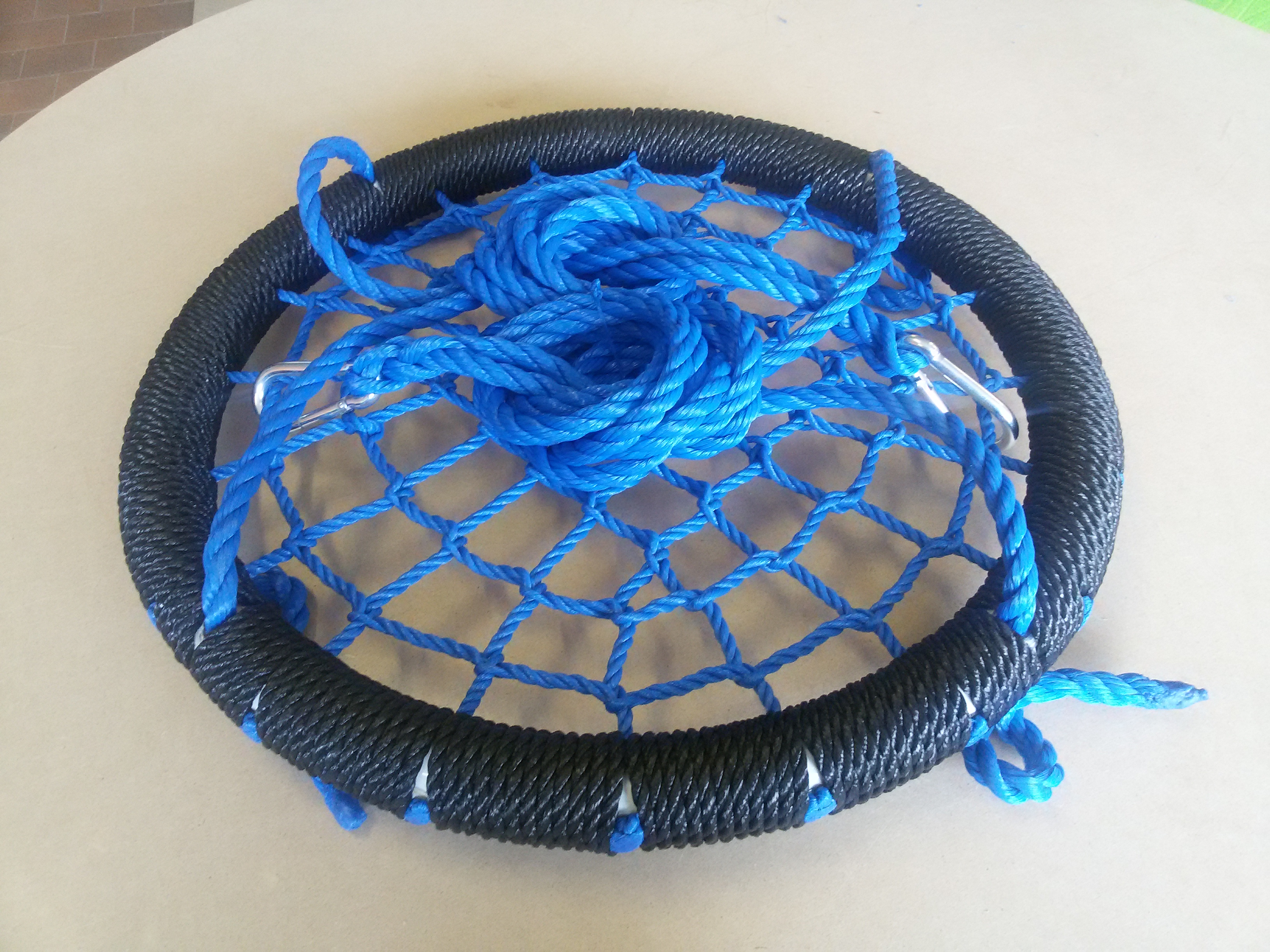 Сиденье (сеть) сплетено из кручёного трёхпрядного каната толщиной 8 мм, разрывная нагрузка на канат более 800 кг ; Сеть надежно крепится к основанию, отсутствуют торчащие узлы, поскольку узлы подлежат термообработке и опрессовке.