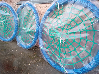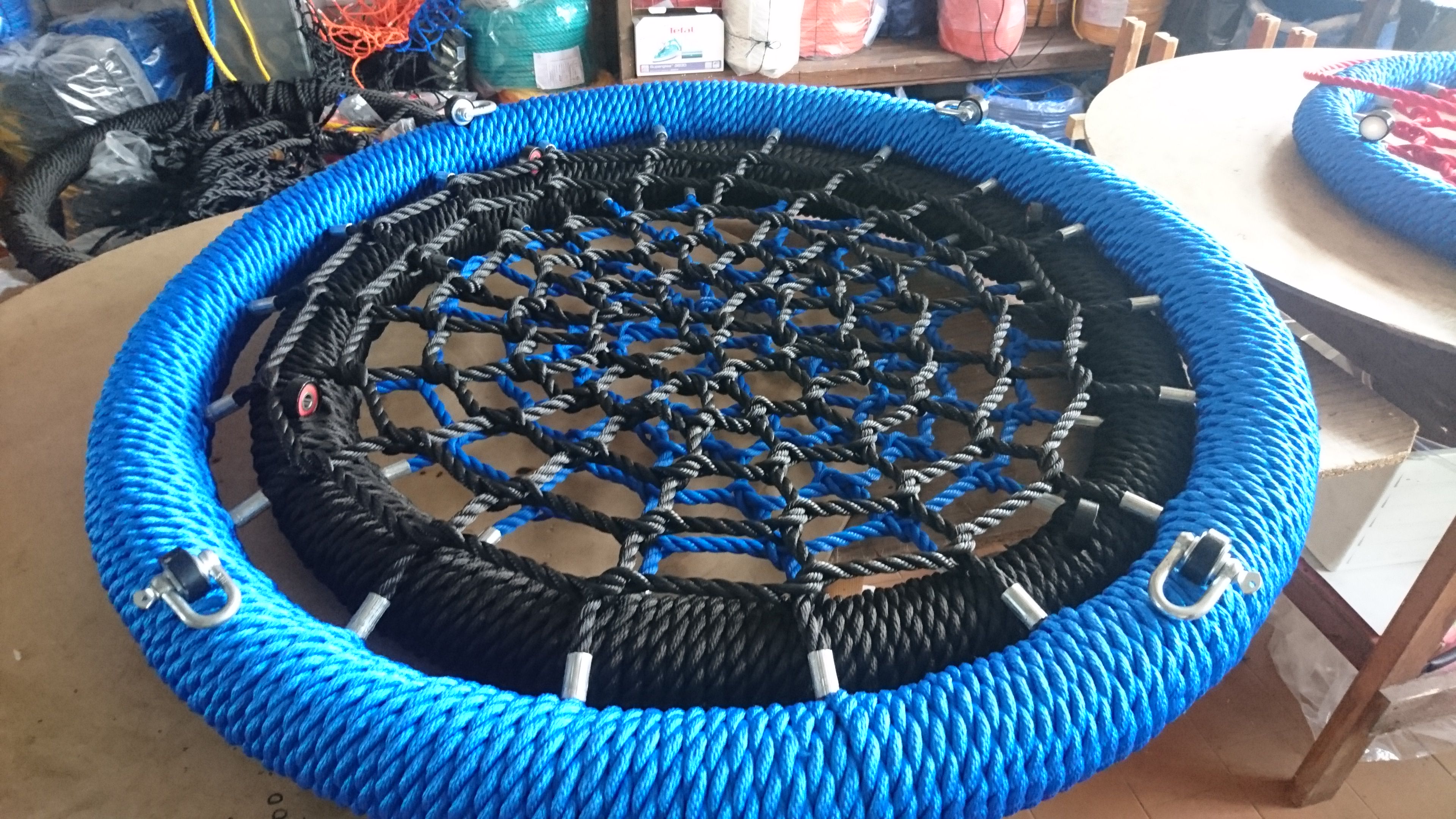 Сиденье (сеть) сплетено из кручёного трёхпрядного каната толщиной 14 мм, разрывная нагрузка на канат более 1200 кг ; Каждый конец сети опрессован специальной муфтой, в которой закреплено шарнирное соединение для крепления к основанию (ободу), это гарантирует отсутствие узлов крепления сети.