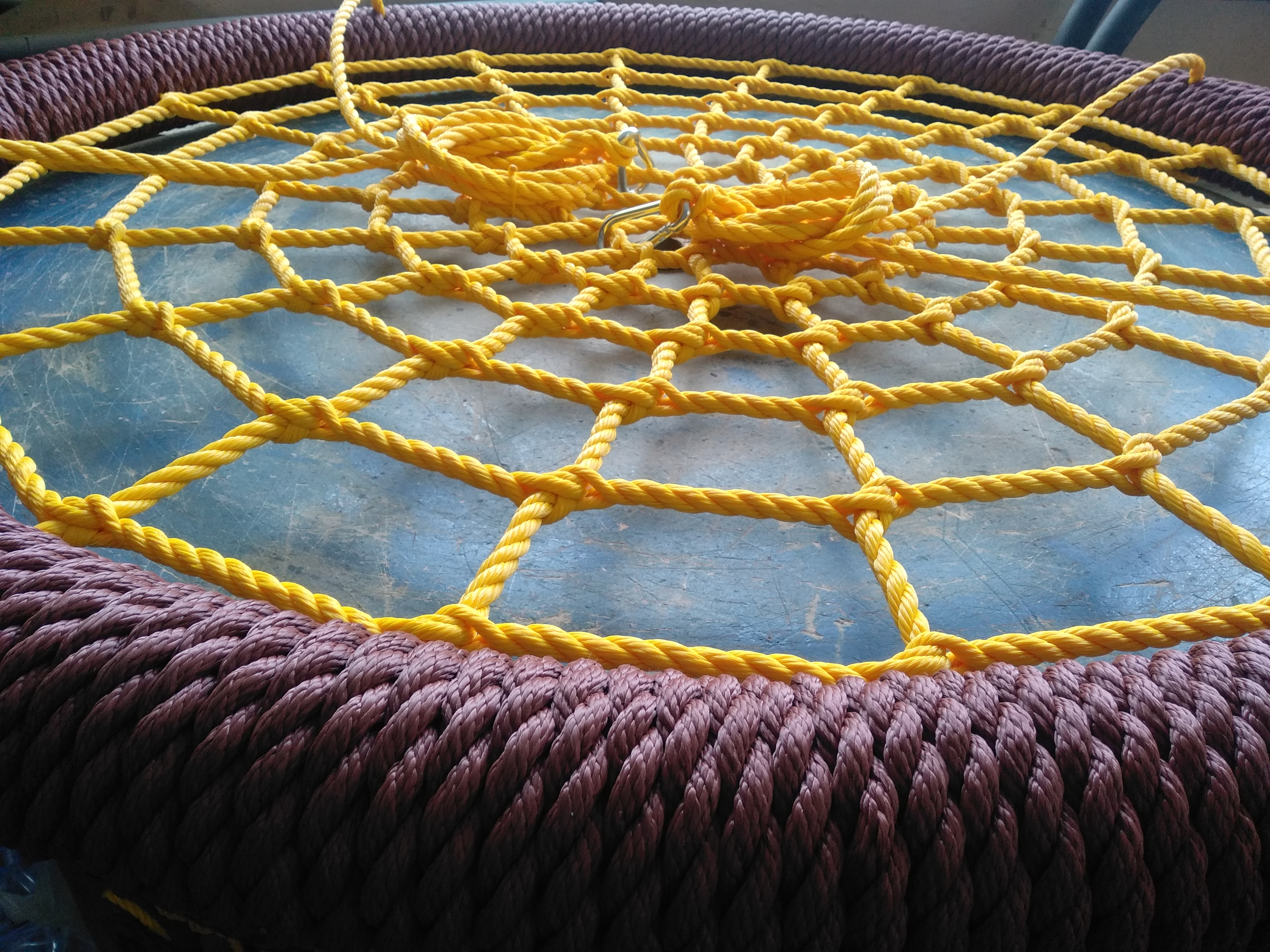 Оплетка основания и подвесы качелей изготовлены из трёхпрядного каната толщиной 14мм. Длина каждого из подвесов 2м.